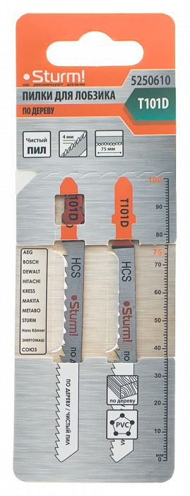 Читать все статьи5250610 Пилки для лобзика Sturm! T101D 2шт прям.чист.рез,10-45мм,мяг.древ.ДСП, пласт.