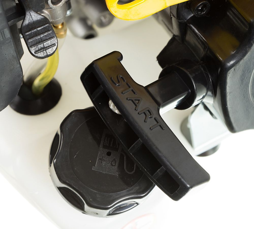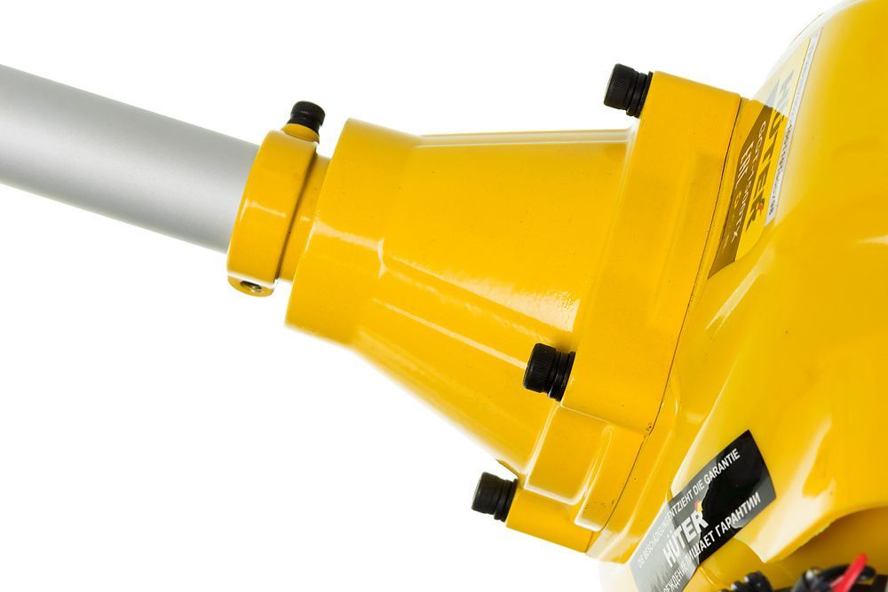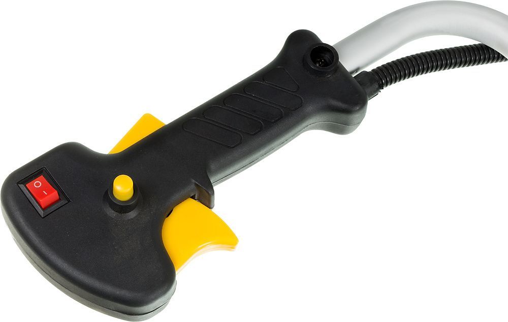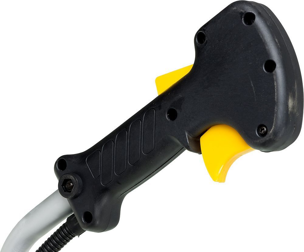 Управление триммером расположено прямо на рукоятке. Удобная рукоятка позволяет регулировать параметры агрегата, прочно его удерживать, а также направлять его рабочую часть в нужное место. Надежный и оборотистый двигатель с системой антивибрации и ле