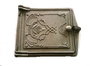 Барельефные рисунки, украшающие дверки и одновременно являются рёбрами жёсткости, предотвращающими коробление дверки при длительном воздействии высоких температур. Благодаря симметричности рисунка и конструктивной особенности запирающего устройства дверки можно устанавливать с открыванием в право и лево. Дверки отлиты из чугуна, металла, химические и физические особенности которого делают его идеальным для использования в создании печного литья. Вертушок расположен на внешней стороне рамки, поэтому он находится вне зоны действия огня для еще более долгого срока эксплуатации.