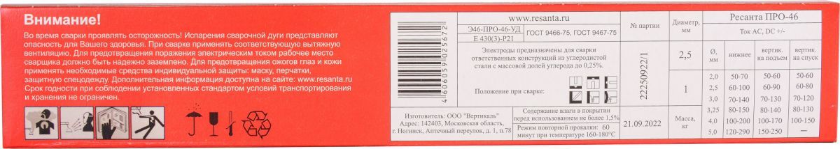 Читать все статьиЭлектрод Ресанта ПРО-46, Ф2,5 Пачка 1кг