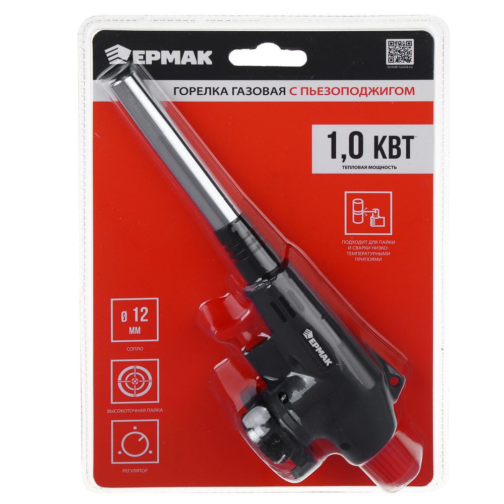 ЕРМАК Горелка газ. с пьезорозжигом, цанг.захват, узк.сопло,латунь,20х6х4см