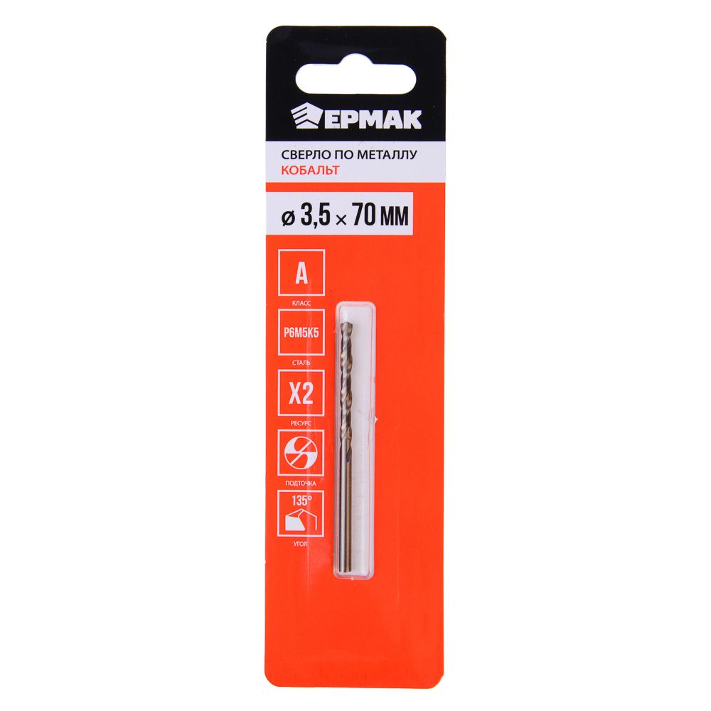 ЕРМАК КОБАЛЬТ Сверло по металлу 3.5х70мм, сталь Р6М5К5, класс А