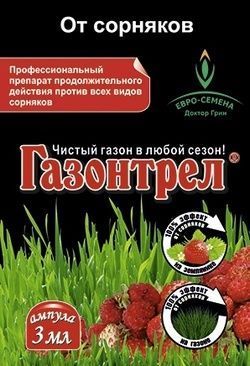 Назначение препарата:  Данный селективный гербицид служит для уничтожения однолетних (ромашка, горец, гречишка) и многолетних (щавель, одуванчик, подорожник, тысячелистник) сорняков на землянике и газонах. Особенную эффективность газонтрел проявляет против осотов. Действующее вещество гербицида проникает при обработках в листья сорных растений и быстро передвигается в точку роста, корни и корневища, прекращая их рост.