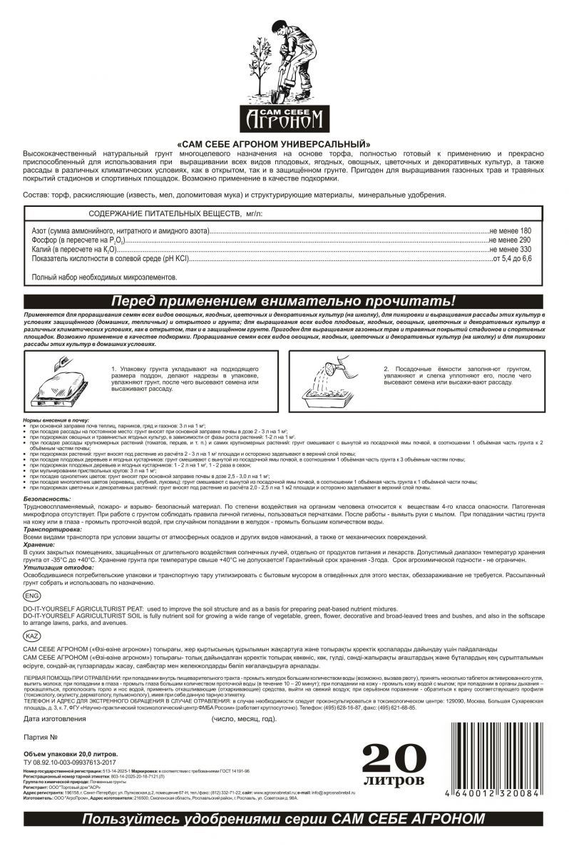 Читать все статьиГрунт Сам себе агроном универсальный 20л
