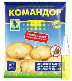 Действует быстро. Уничтожает самых стойких вредителей — колорадского жука на картофеле, белокрылку, тлей, трипсов на овощных, цветочных и декоративных культурах. Действует долго. Обычно достаточно одной обработки. Безотказно действует в жаркую погоду, что особенно важно для южных районов. Низкая норма расхода на картофеле — 1 мл на сотку. Специальный флакон с герметичной крышкой. Защищенное качество. Действующее вещество препарата "Командор": имидаклоприд 200 г/л,. Форма выпуска: флакон 10 мл, ампулы 1 мл.