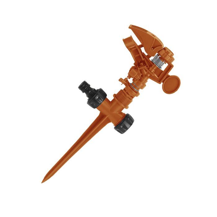Импульсный распылитель используется для орошения больших секторов площадей. Возможность регулировки угла распыла обеспечивает качественный полив под деревьями и кустами.