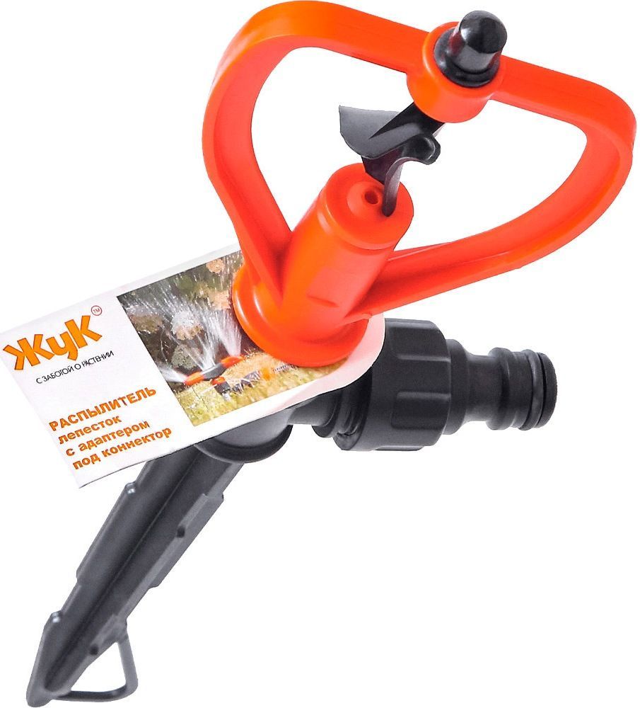 Распылитель Лепесток ЖУК под коннектор Распылитель "Лепесток" "ЖУК" предназначен для полива газона и огорода. Примененяется для полива газона и огорода, подходит при слабом напоре воды на приусадебном участке (от 1 атм.) В комплекте распылителем идет адаптер для подключения коннектора Необходимое давление в шланге от 1-2 атм. Радиус полива зависит от напора воды в системе и высоты установки распылителя. Средний радиус распыла при 0,5 атм-0,5 м, при 3 атм- 3-5 м. На ножке предусмотрены рёбра позволяющие надёжно зафиксировать распылитель к земле или примотать к самодельной удлиненной опоре. Специально для полива огорода можно приобрести такой же распылитель, но на штанге-удлинителе высотой 0,6 или 1 метр.