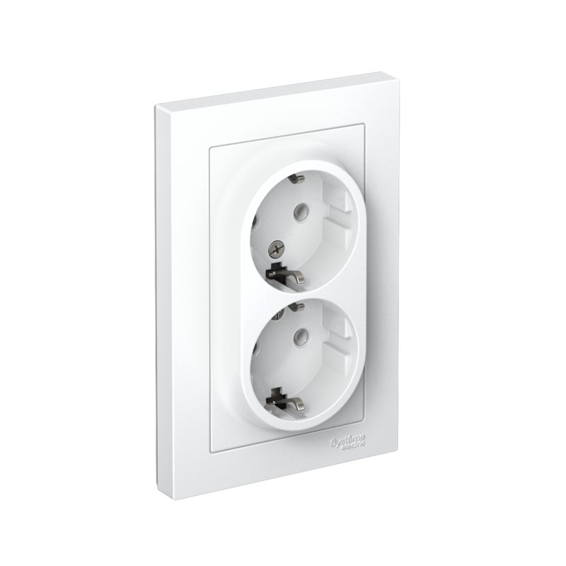 Розетка двойная с з/к,16А в сборе белый ATN000124