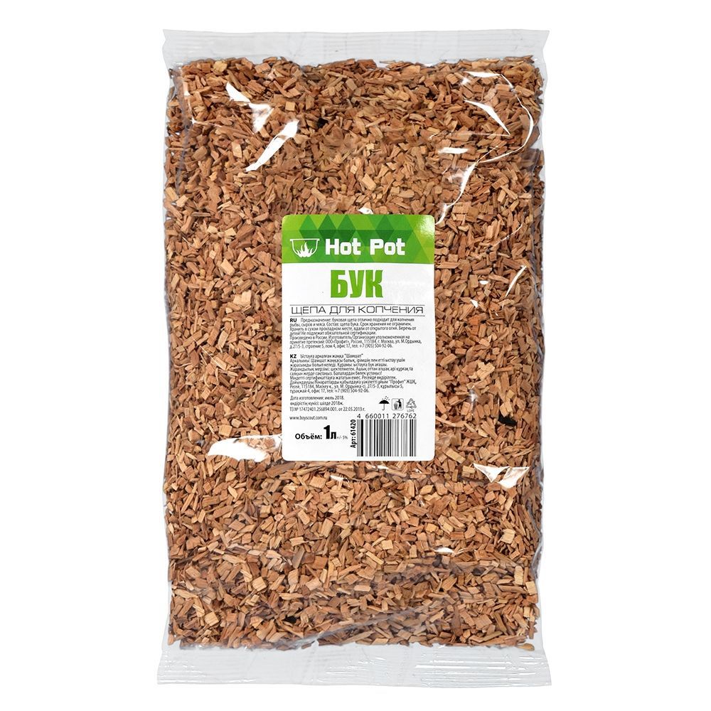 Щепа бука "hot pot" изготавливается только из натуральной древесины. Проста в использовании. Однородный состав позволяет добиться равномерного копчения, улучшая вкус и аромат готового продукта. Длительный срок хранения достигается за счет оптимальной влажности щепы.