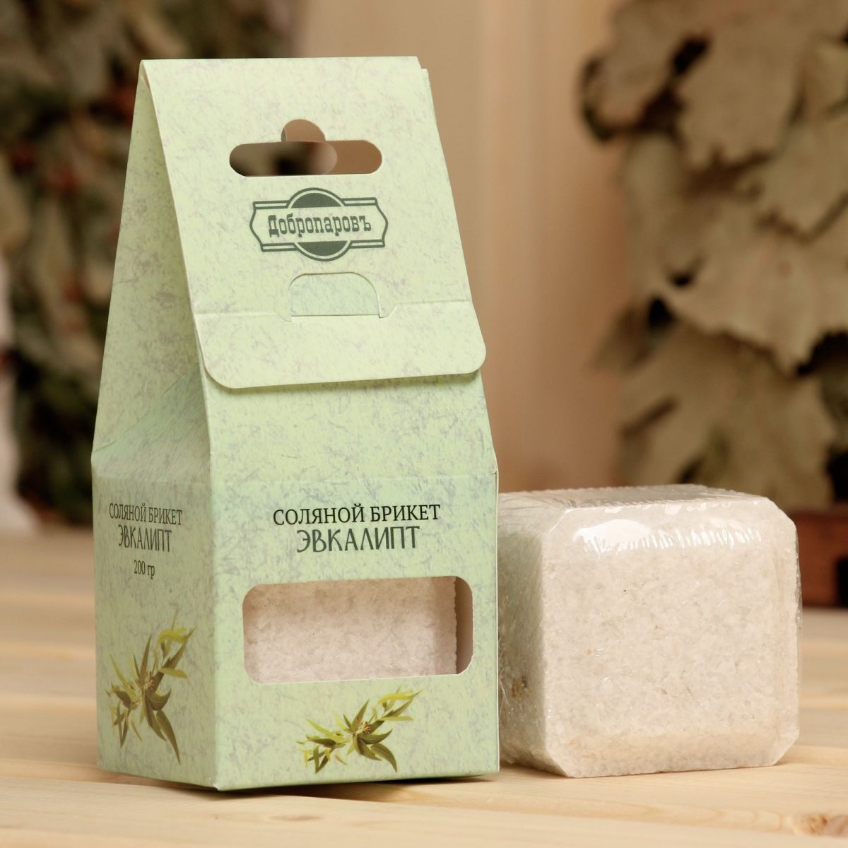 Соляной брикет куб «Эвкалипт» 200 г «Добропаровъ»