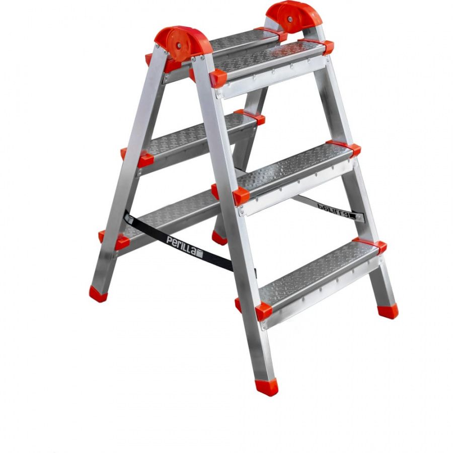 Стальная двухсторонная стремянка Perilla ЯРУС 3 ступени 122403 используется в быту - дом, сад, гараж, а также в коммунальной и строительной деятельности. Надежность. Покрытие профиля защищает от большинства вмятин при падении стремянки. Широкие профилированные ступени с рифлением для длительной работы на высоте. Пластиковые рифленые наконечники на основании опорных направляющих предотвращают скольжение и защищают напольное покрытие от царапин.