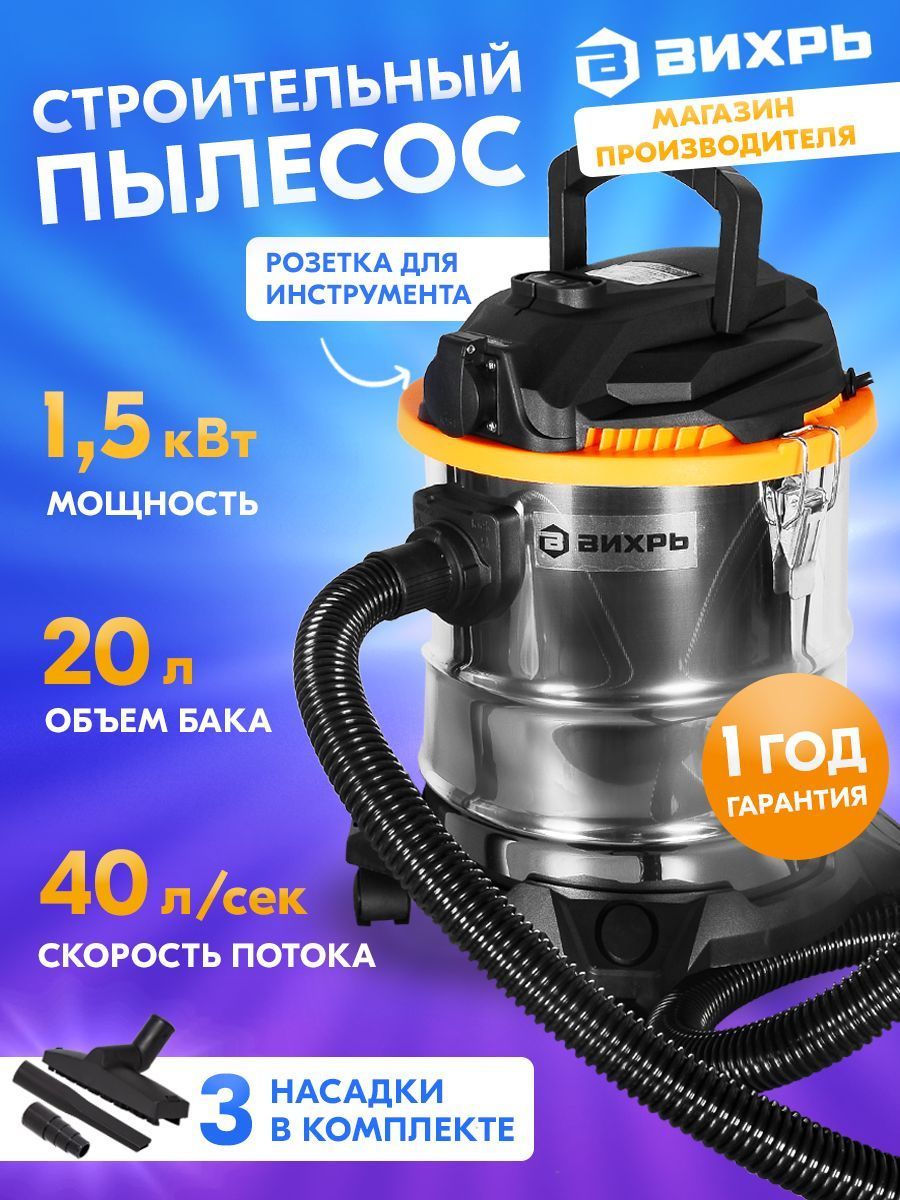 Читать все статьиСтроительный пылесос СП-1500/20 Вихрь