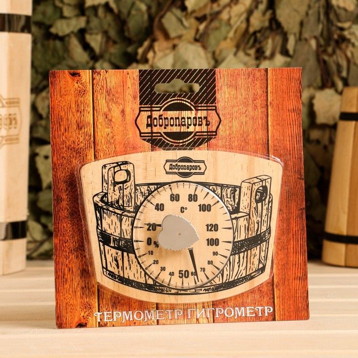Термометр - гигрометр для бани и сауны «Шайка», деревянный, «Добропаровъ»