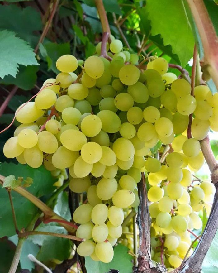 Дополнительно: Сорт – чемпион по размеру и сладости ягод! Средне-сильнорослый куст. Грозди крупные, средней массой 531 г, конические, иногда свободной формы, умеренно плотные. Ягоды крупные, до 7 г, белые с румянцем, мякоть хрустящая, гармоничного сладкого вкуса, кожица умеренно плотная, сахаронакопление 19-26%, кислотность 5-9 г/л. Плодоносных побегов 65-85%, для достижения максимального объема гроздей рекомендуемая нагрузка на лозу – 1,4-1,7. Рекомендуемая нагрузка на куст 35-45 глазков при длине обрезки плодовых лоз на 6-10 глазков."